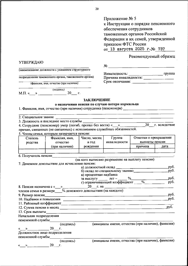 ПРИКАЗ ФТС РФ от 13.08.2025 N 737