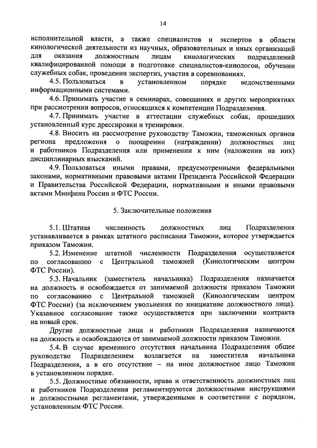 "ОБ УТВЕРЖДЕНИИ ТИПОВЫХ ПОЛОЖЕНИЙ О КИНОЛОГИЧЕСКИХ ПОДРАЗДЕЛЕНИЯХ ТАМОЖЕННЫХ ОРГАНОВ РОССИЙСКОЙ ФЕДЕРАЦИИ"