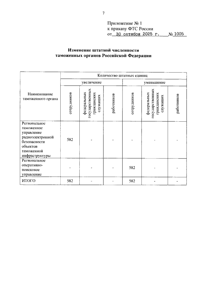 ПРИКАЗ ФТС РФ от 30.10.2025 N 1005