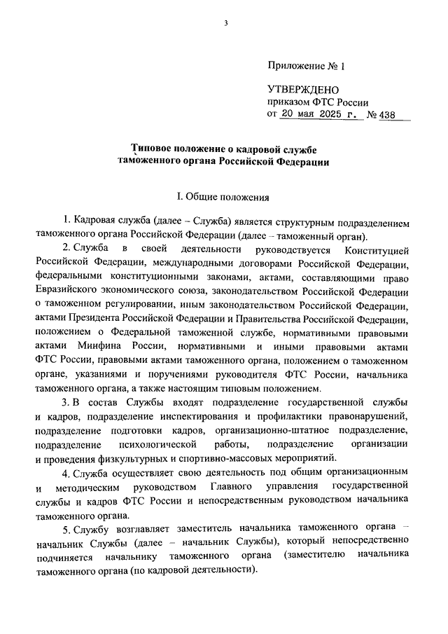 ПРИКАЗ ФТС РФ от 20.05.2025 N 438
