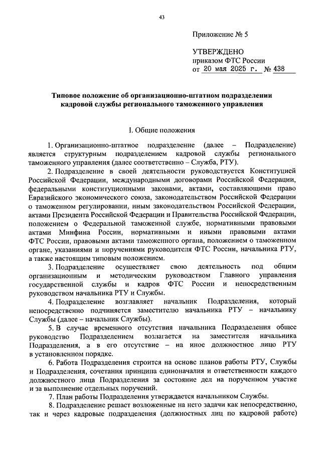 ПРИКАЗ ФТС РФ от 20.05.2025 N 438