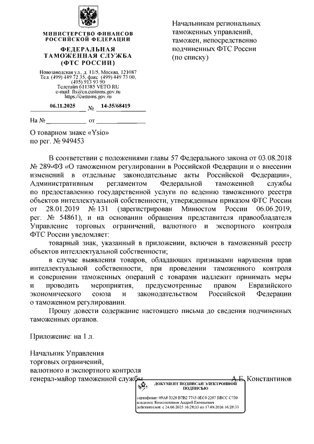 ПИСЬМО ФТС РФ от 06.11.2025 N 14-35/68419