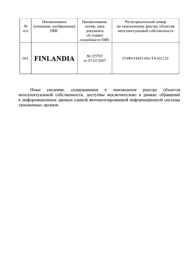 "О ТОВАРНОМ ЗНАКЕ "FINLANDIA"