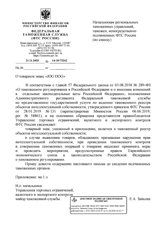 ПИСЬМО ФТС РФ от 21.11.2025 N 14-35/72262