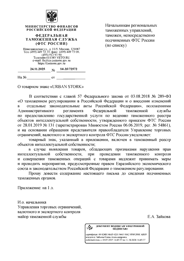 ПИСЬМО ФТС РФ от 24.11.2025 N 14-35/72572