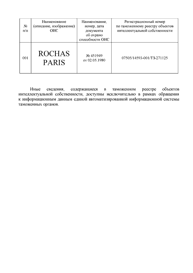 "О ТОВАРНОМ ЗНАКЕ "ROCHAS PARIS"