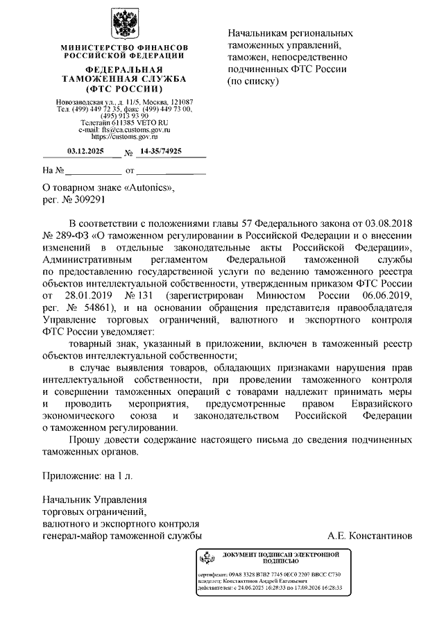 ПИСЬМО ФТС РФ от 03.12.2025 N 14-35/74925