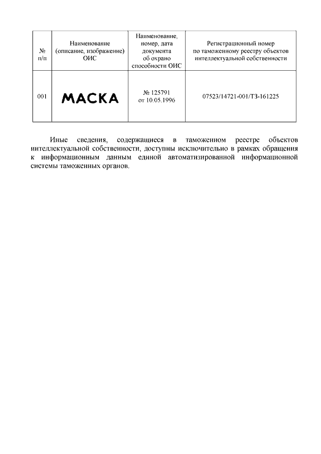 "О ТОВАРНОМ ЗНАКЕ "МАСКА"
