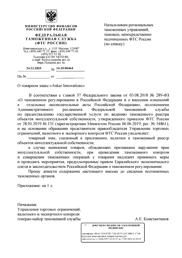 ПИСЬМО ФТС РФ от 24.12.2025 N 14-35/80464