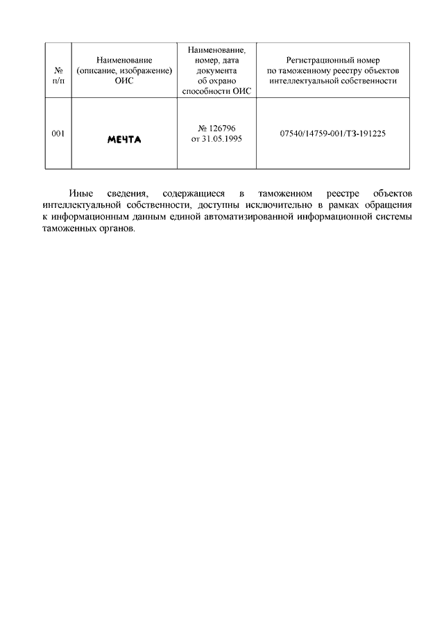 "О ТОВАРНОМ ЗНАКЕ "МЕЧТА"