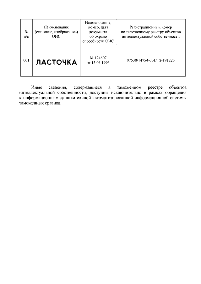 "О ТОВАРНОМ ЗНАКЕ "ЛАСТОЧКА"