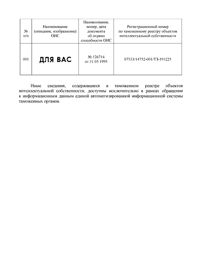 "О ТОВАРНОМ ЗНАКЕ "ДЛЯ ВАС"