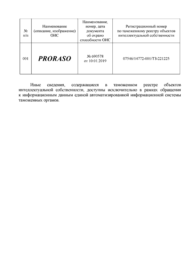 "О ТОВАРНОМ ЗНАКЕ "PRORASO"