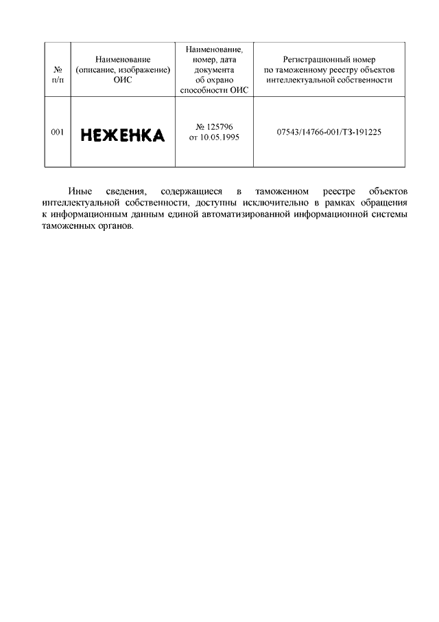 "О ТОВАРНОМ ЗНАКЕ "НЕЖЕНКА"