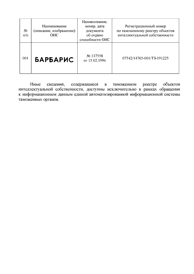 "О ТОВАРНОМ ЗНАКЕ "БАРБАРИС"