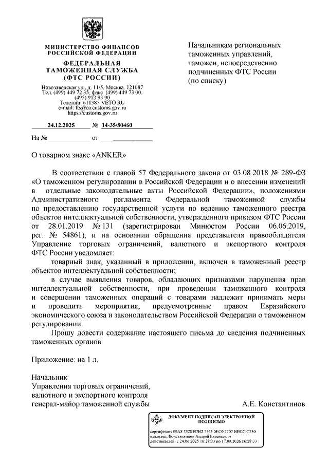 ПИСЬМО ФТС РФ от 24.12.2025 N 14-35/80460