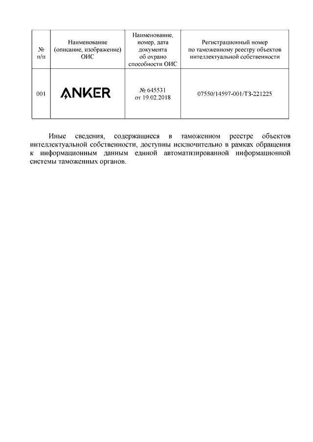 "О ТОВАРНОМ ЗНАКЕ "ANKER"