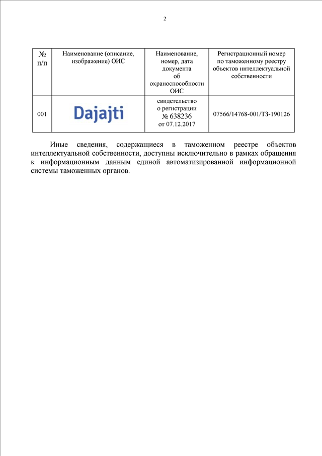 "О ТОВАРНОМ ЗНАКЕ "DAJAJTI" (РЕГ. N 638236)"