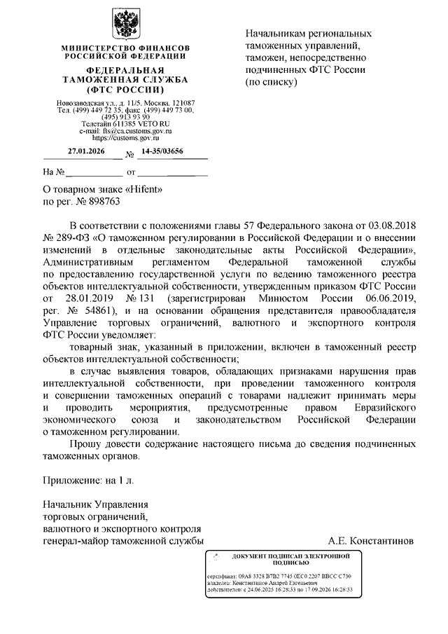 ПИСЬМО ФТС РФ от 27.01.2026 N 14-35/03656