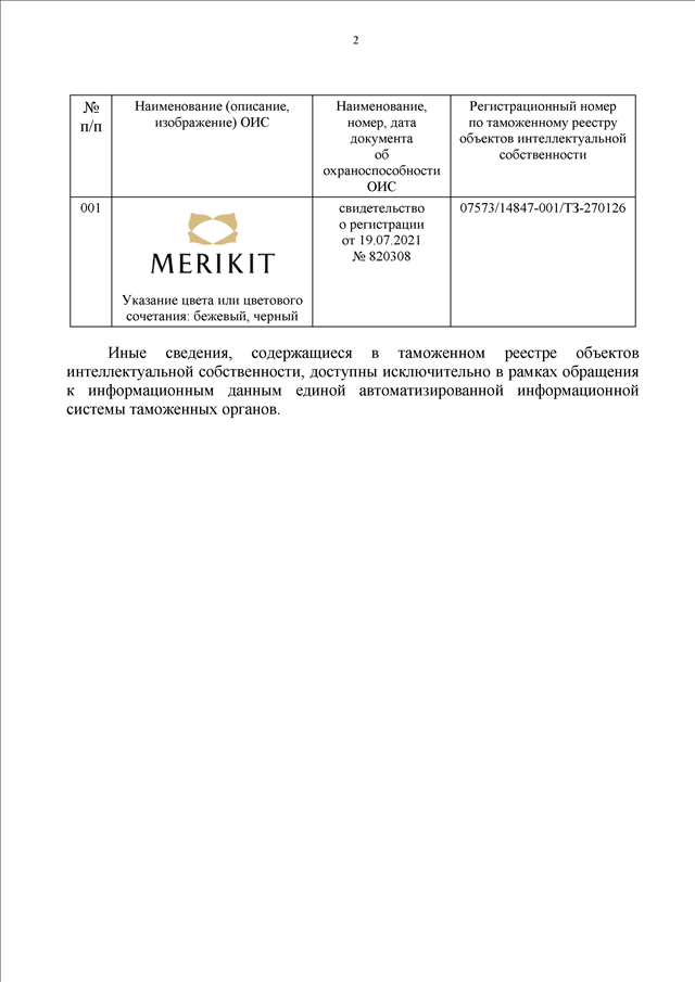 "О ТОВАРНОМ ЗНАКЕ "MERIKIT" ПО РЕГ. N 82308"