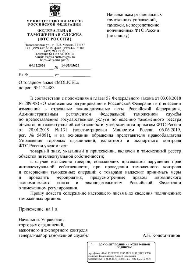 ПИСЬМО ФТС РФ от 04.02.2026 N 14-35/05623