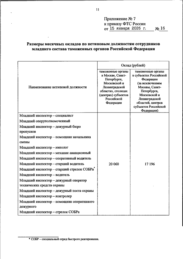 "ОБ УСТАНОВЛЕНИИ РАЗМЕРОВ МЕСЯЧНЫХ ОКЛАДОВ ПО НЕТИПОВЫМ ДОЛЖНОСТЯМ СОТРУДНИКОВ ТАМОЖЕННЫХ ОРГАНОВ РОССИЙСКОЙ ФЕДЕРАЦИИ"