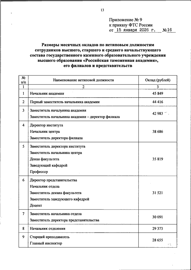 "ОБ УСТАНОВЛЕНИИ РАЗМЕРОВ МЕСЯЧНЫХ ОКЛАДОВ ПО НЕТИПОВЫМ ДОЛЖНОСТЯМ СОТРУДНИКОВ ТАМОЖЕННЫХ ОРГАНОВ РОССИЙСКОЙ ФЕДЕРАЦИИ"