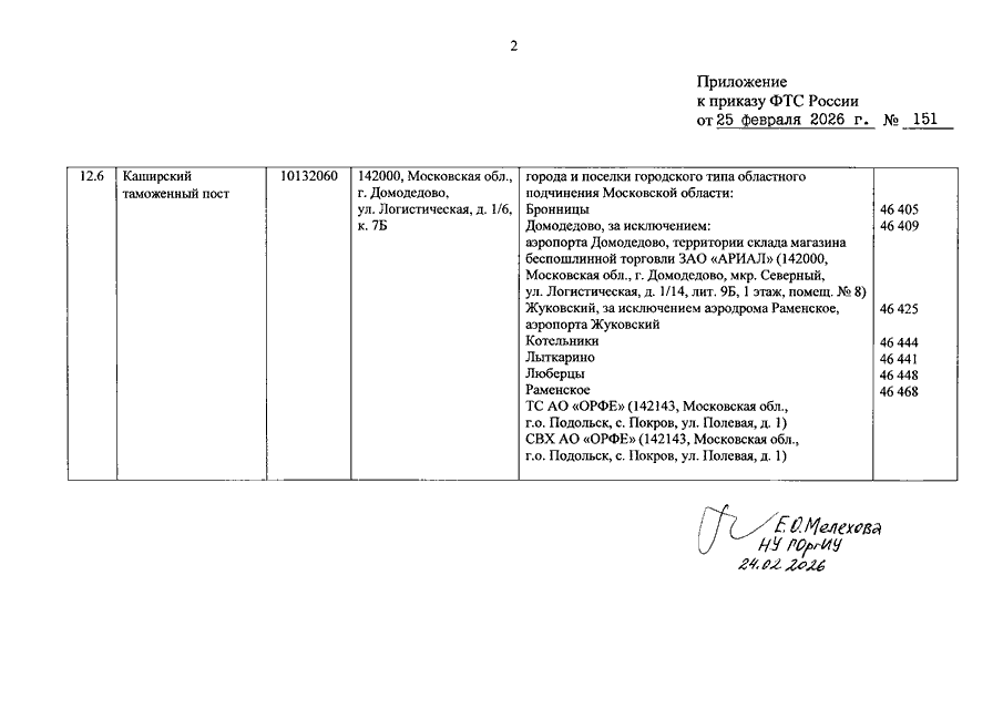 ПРИКАЗ ФТС РФ от 25.02.2026 N 151