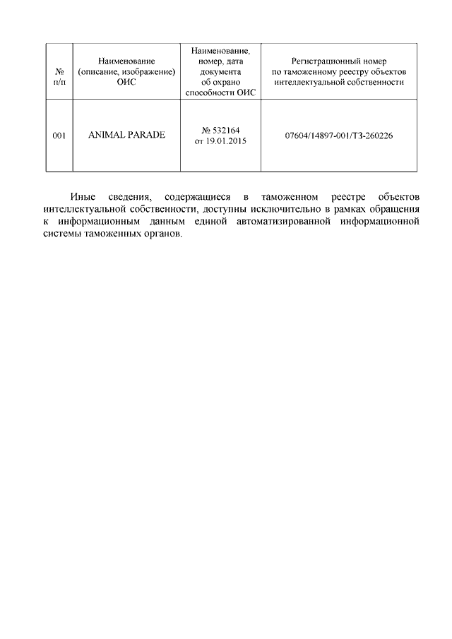 "О ТОВАРНОМ ЗНАКЕ "ANIMAL PARADE"