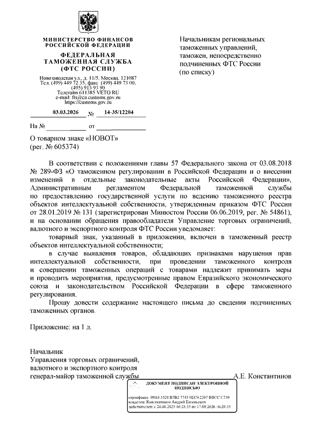 ПИСЬМО ФТС РФ от 03.03.2026 N 14-35/12204