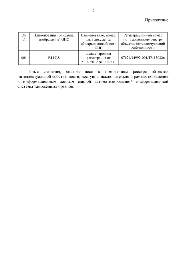 "О ТОВАРНОМ ЗНАКЕ "ELICA" (РЕГ. N 1109531)"
