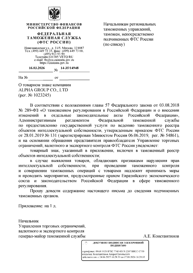ПИСЬМО ФТС РФ от 16.03.2026 N 14-35/14948