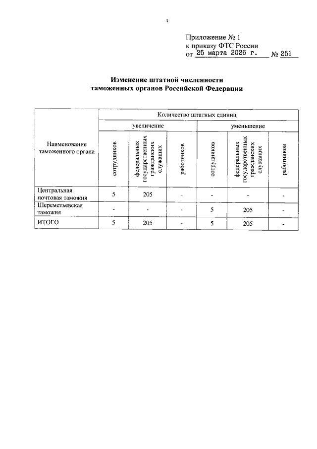 ПРИКАЗ ФТС РФ от 25.03.2026 N 251