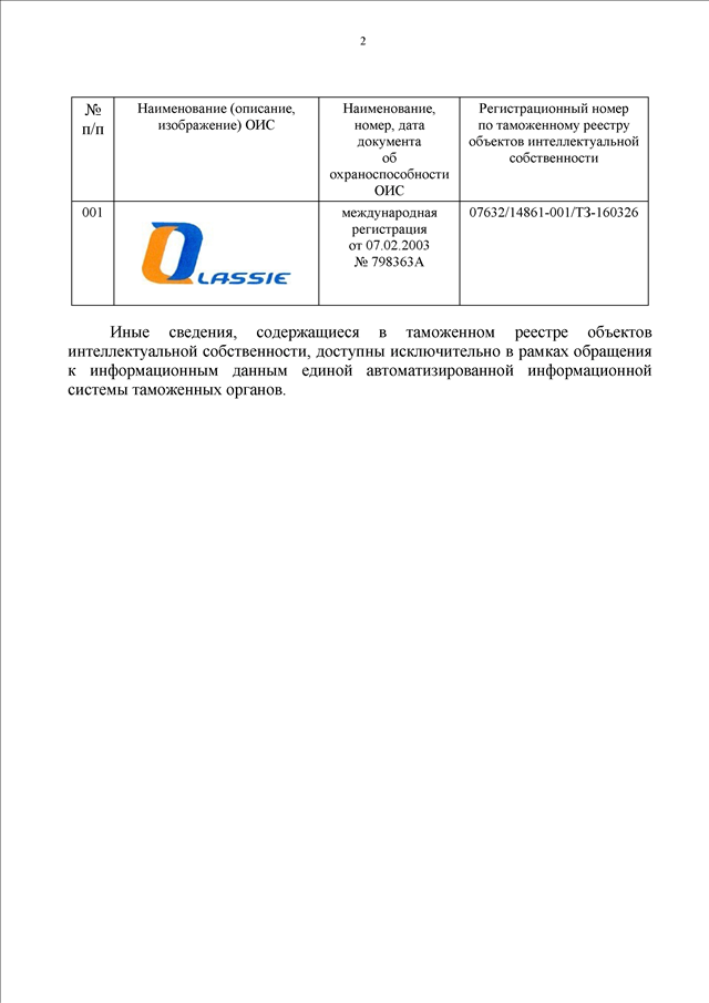 "О ТОВАРНОМ ЗНАКЕ "LASSIE" ПО РЕГ. N 798363А"