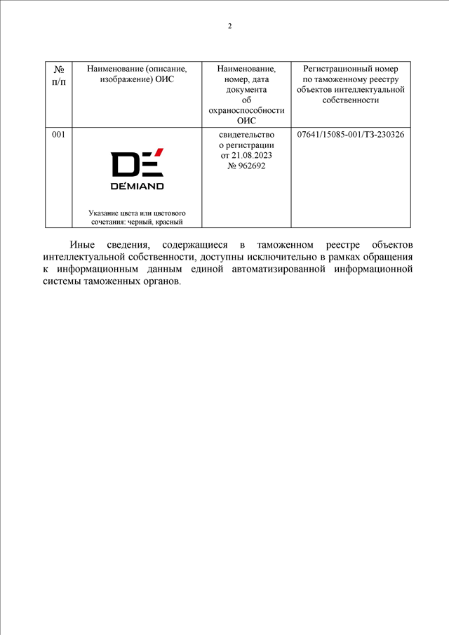 "О ТОВАРНОМ ЗНАКЕ "DEMIAMD" ПО РЕГ. N 962692"