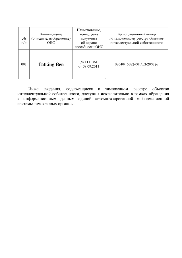 "О ТОВАРНОМ ЗНАКЕ "TALKING BEN"