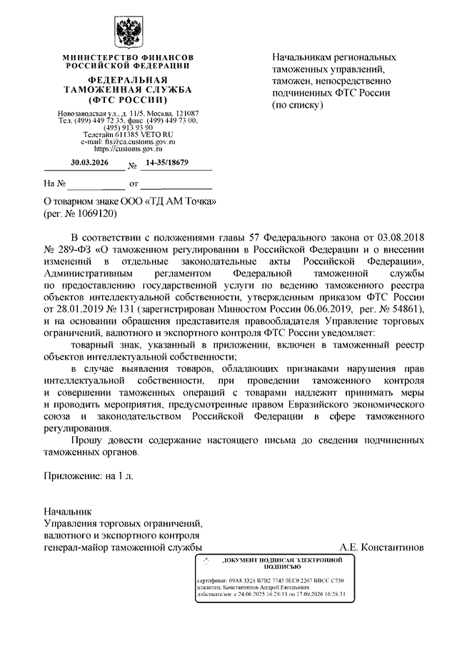 ПИСЬМО ФТС РФ от 30.03.2026 N 14-35/18679