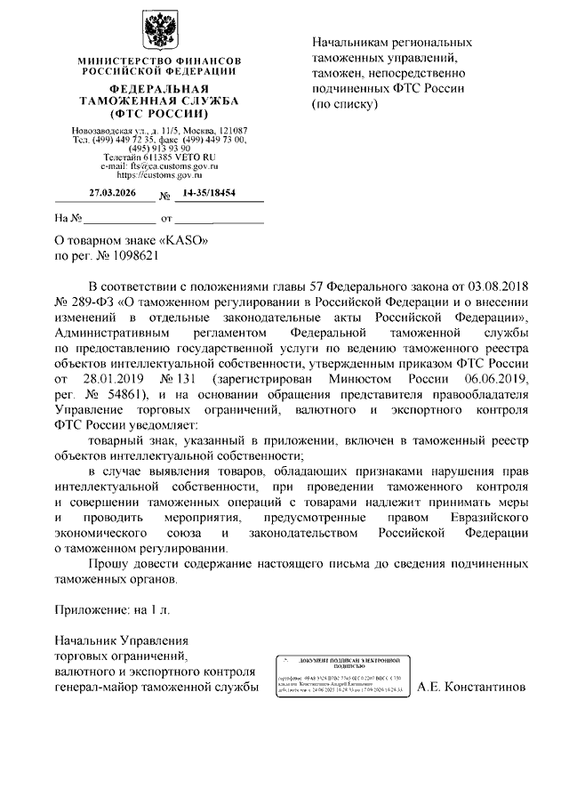 ПИСЬМО ФТС РФ от 27.03.2026 N 14-35/18454