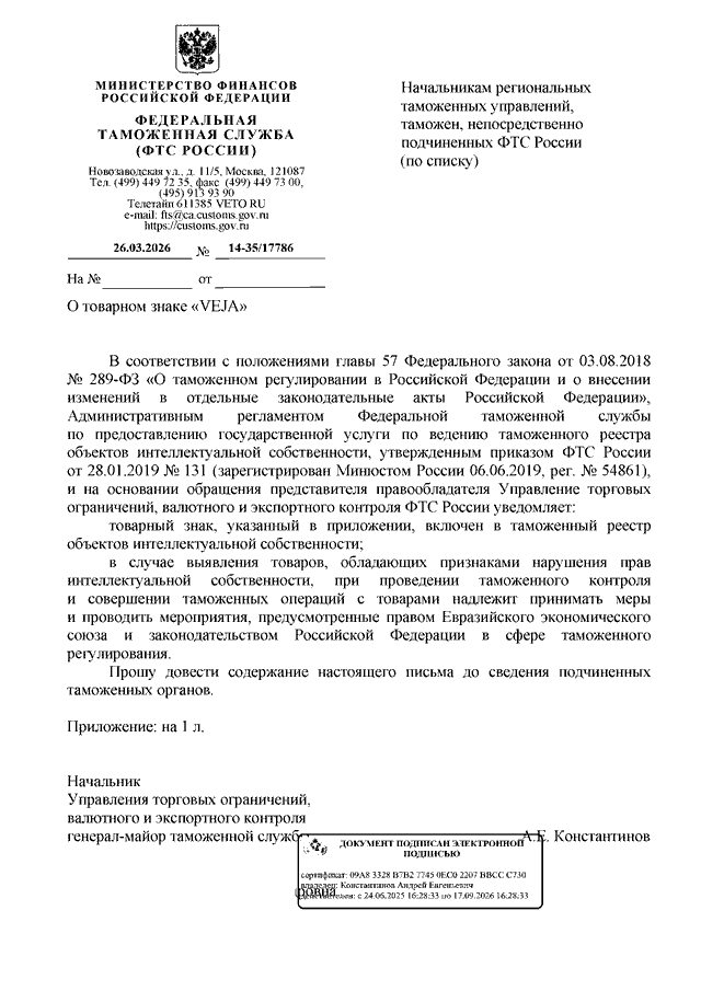 ПИСЬМО ФТС РФ от 26.03.2026 N 14-35/17786