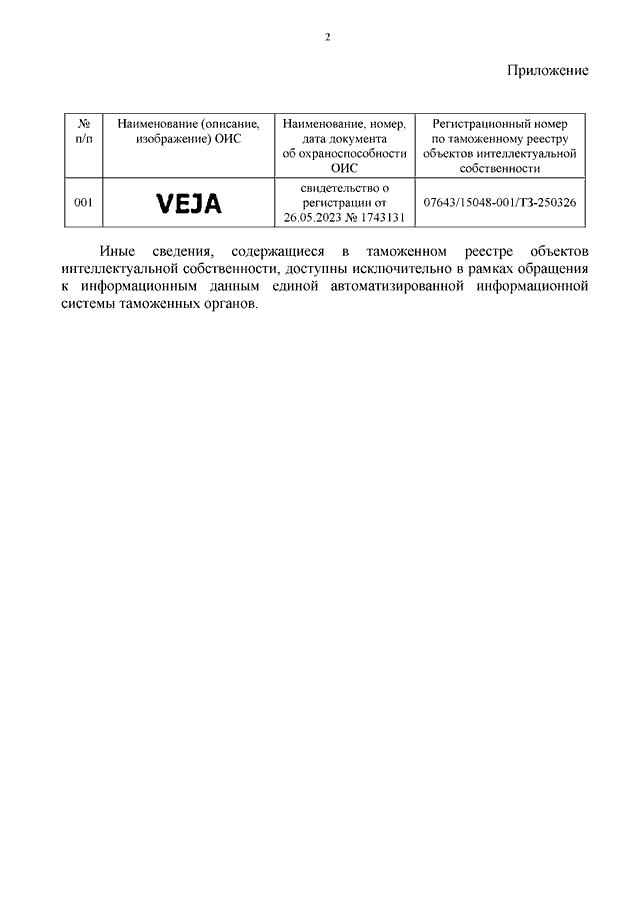 "О ТОВАРНОМ ЗНАКЕ "VEJA"