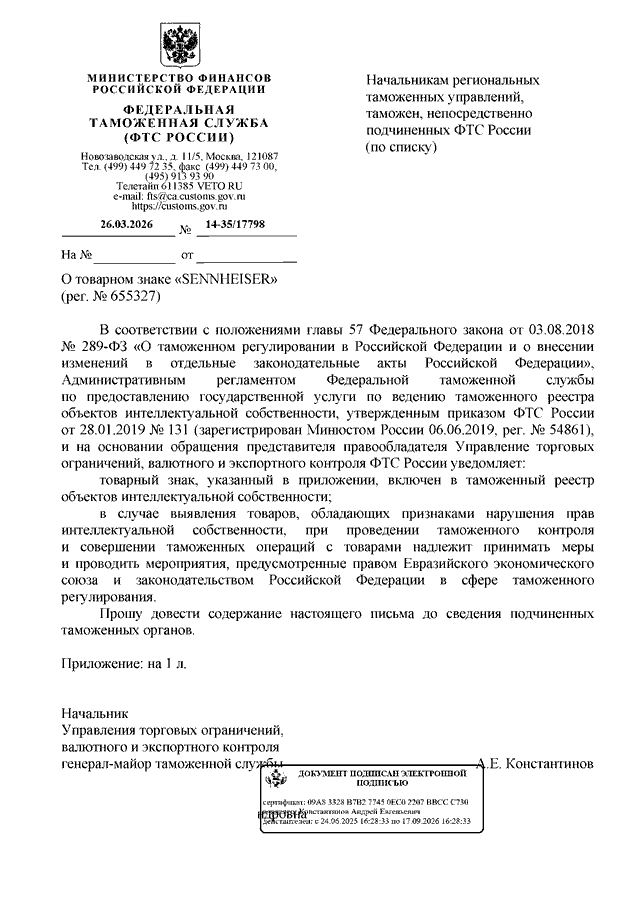 ПИСЬМО ФТС РФ от 26.03.2026 N 14-35/17798