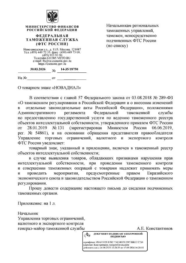 ПИСЬМО ФТС РФ от 30.03.2026 N 14-35/18750