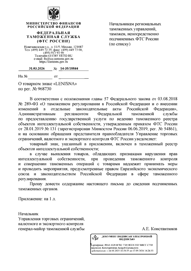 ПИСЬМО ФТС РФ от 31.03.2026 N 14-35/18844