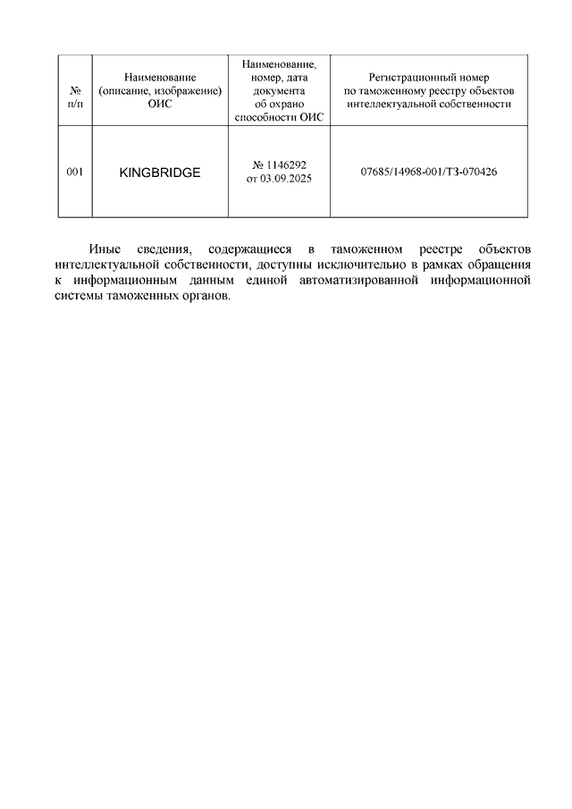 "О ТОВАРНОМ ЗНАКЕ "KINGBRIDGE"