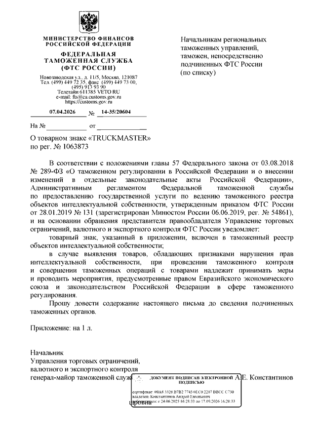 ПИСЬМО ФТС РФ от 07.04.2026 N 14-35/20604