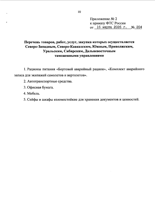 ПРИКАЗ ФТС РФ от 16.03.2026 N 204