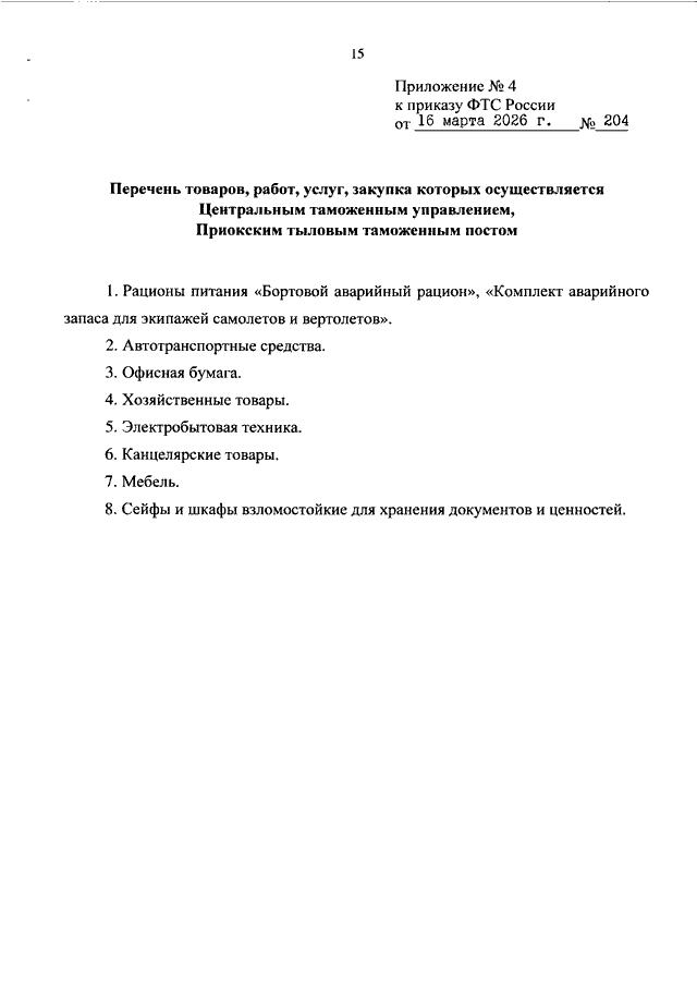 ПРИКАЗ ФТС РФ от 16.03.2026 N 204