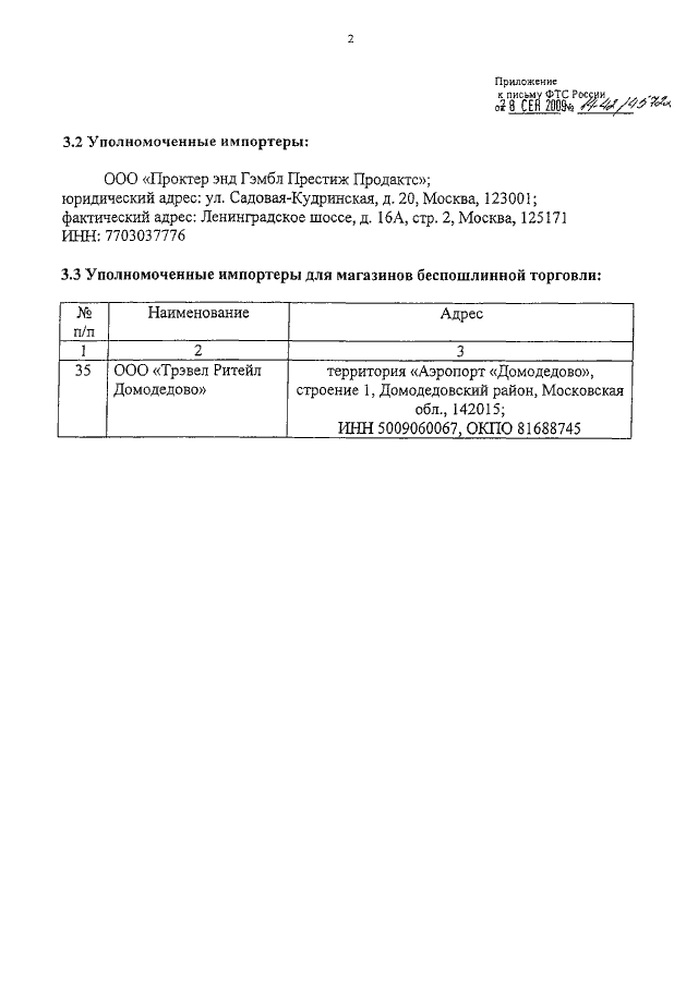 ПИСЬМО ФТС РФ от 28.09.2009 N 14-42/45722