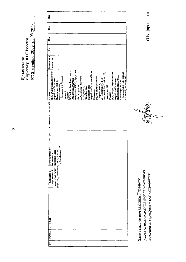 ПРИКАЗ ФТС РФ от 12.11.2009 N 2049