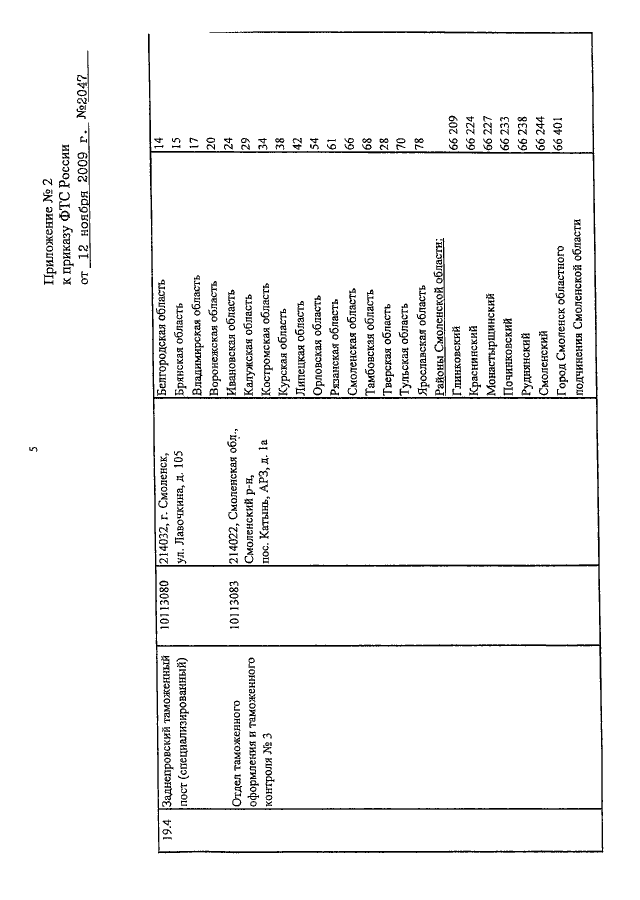 ПРИКАЗ ФТС РФ от 12.11.2009 N 2047